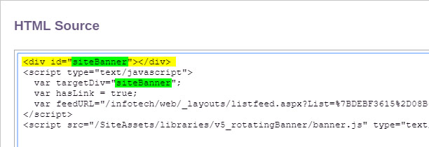 The id doesn't need to be "siteBanner" it can be anything. You can target any div on the page if you know its ID, but since we're just putting it right here we're adding a new div right here to put the slideshow into.