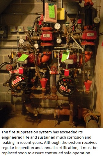 The fire suppression system has exceeded its engineered life and sustained much corrosion and leaking in recent years. Although the system receives regular inspection and annual certification, it must be replaced soon to assure continued safe operation, said Paul Hasler, Facility Services director.