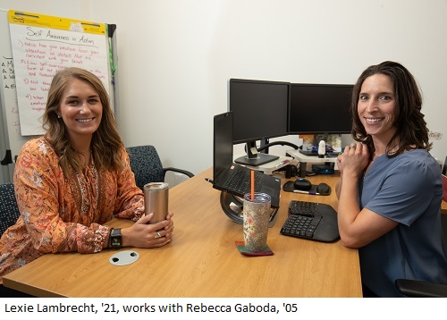 Skyward also took on a wellness intern this spring, for the first time in seven years, to help with post-pandemic social and emotional wellbeing. Lexie Lambrecht, Waukesha, works with wellness administrator Chris Harrison, a 2014 UW-Stevens Point graduate, and Gaboda.